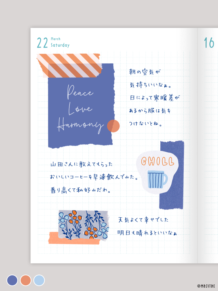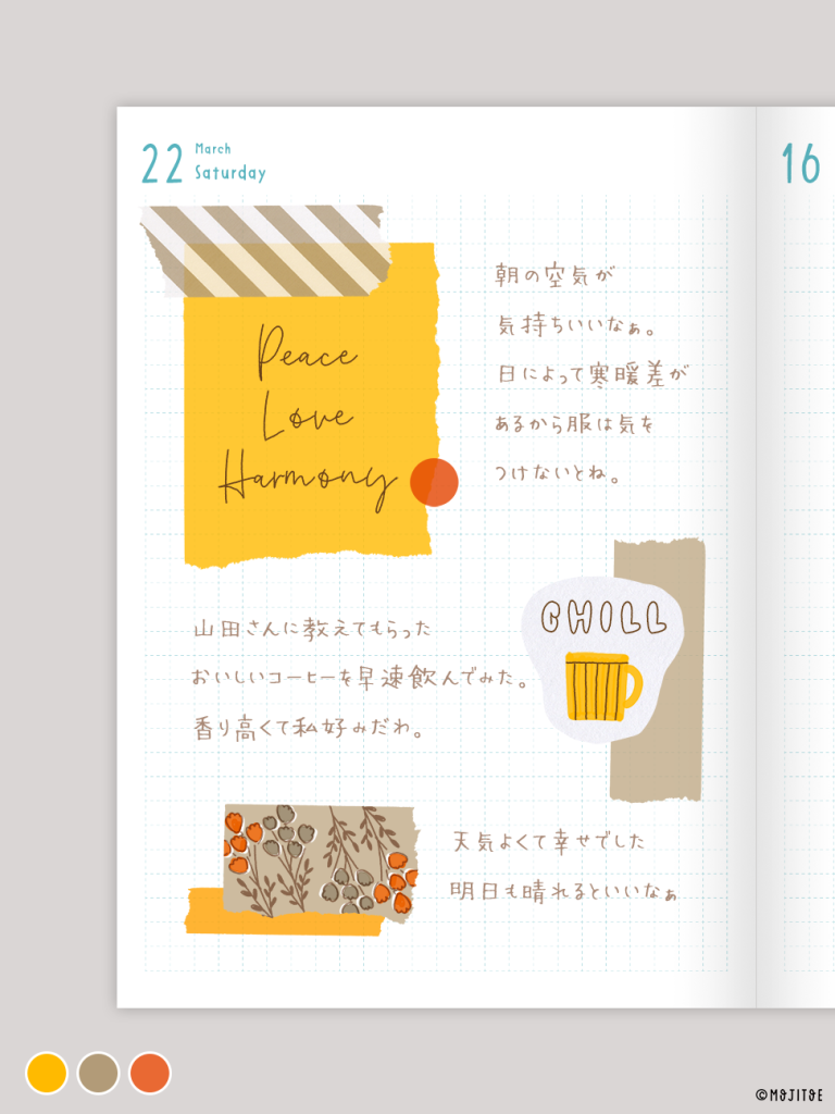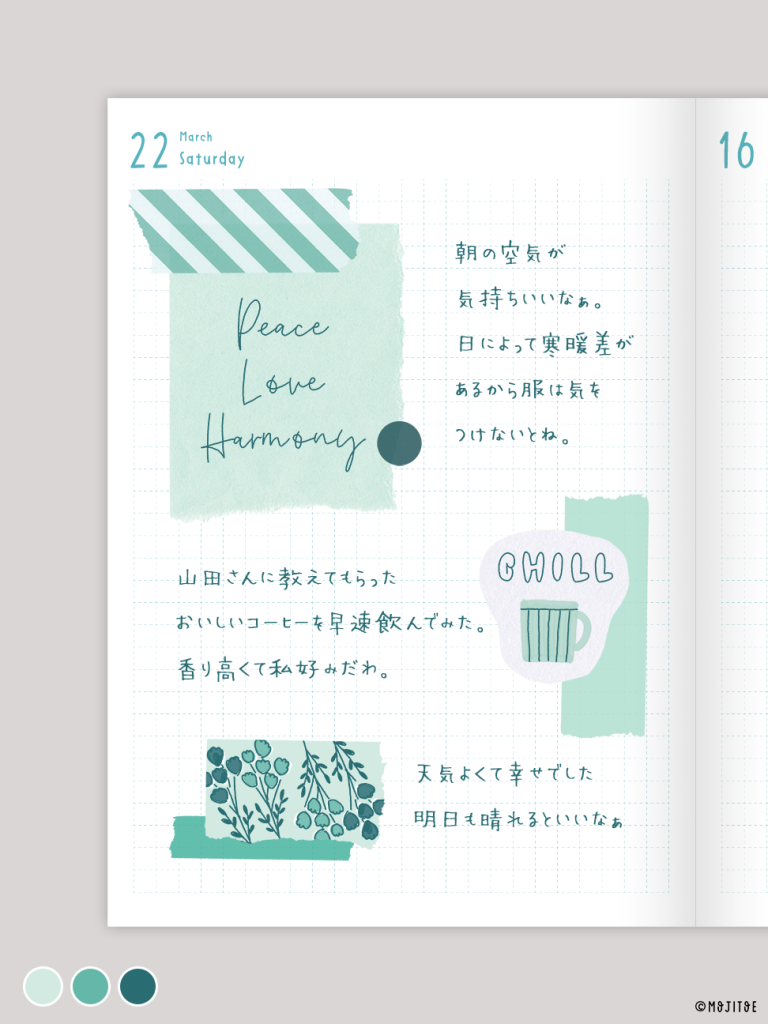 • 手帳全体のテーマカラーで、配色の中心となる色。
