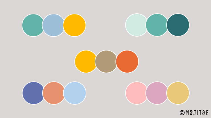配色にはいくつかの基本的な組み合わせ方があります。難しく考えず、以下のパターンを参考にすれば、簡単に手帳をおしゃれに彩れます。
