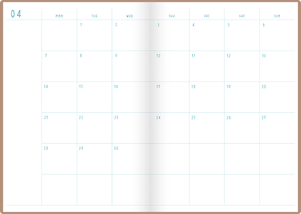 月ごとに予定を見やすくまとめるレイアウトです。ひと目でその月の全体の予定が把握できるので、シンプルに予定を管理したい方にぴったりです。