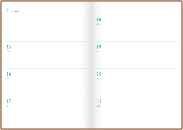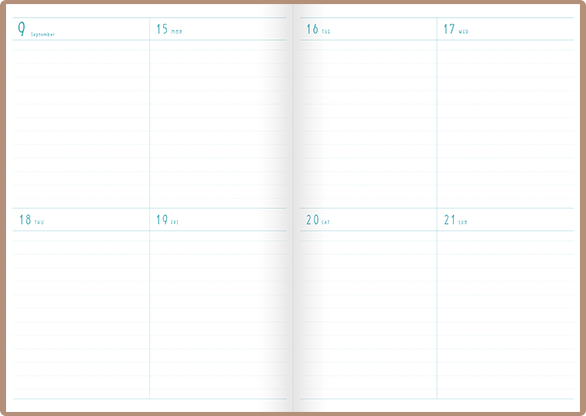 1週間を横に分けたレイアウトです。横幅が広く、長めの文章が書きやすいので日記や詳細なメモ書きに便利です。