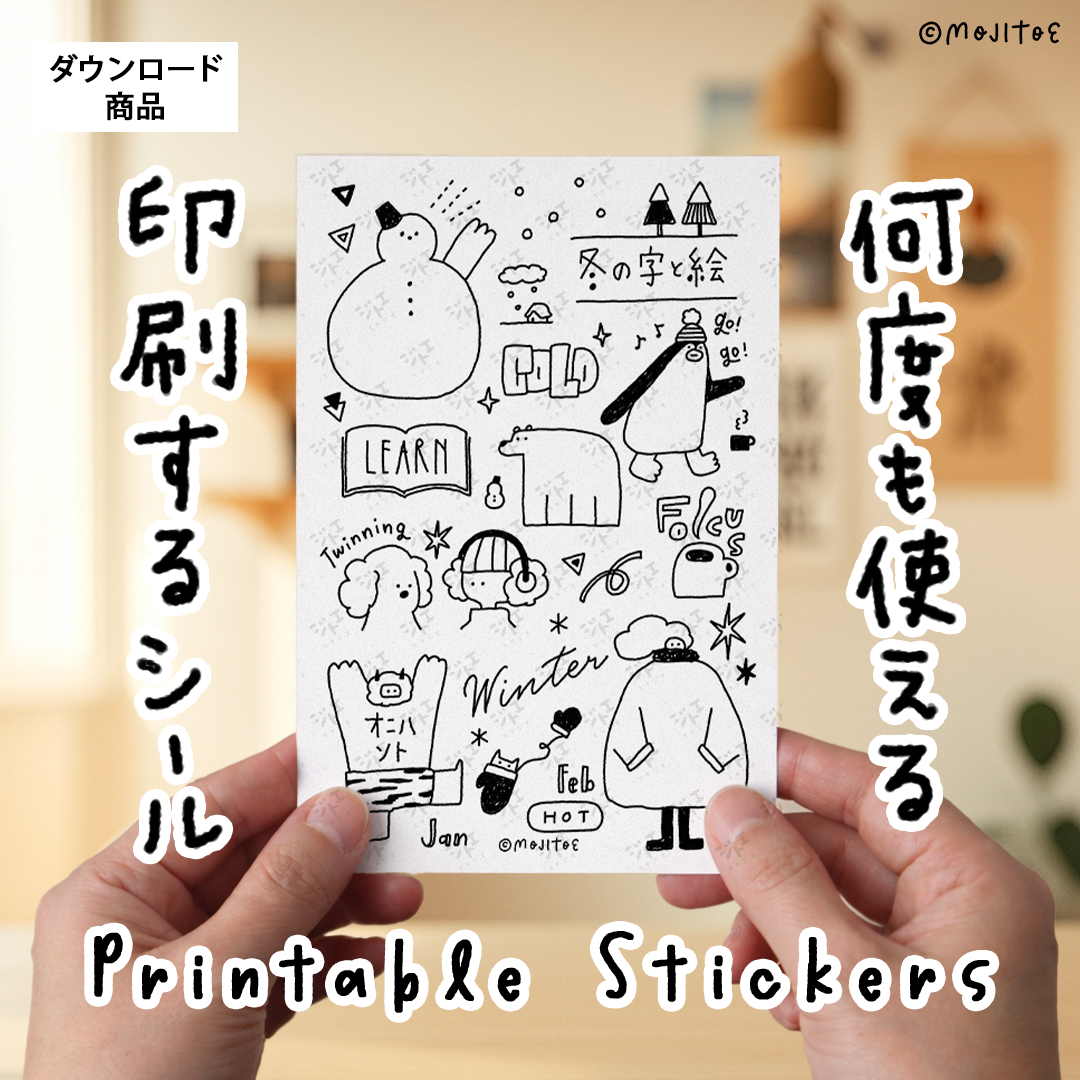 【手帳素材PDF】冬の字と絵 印刷するシール用PDF はがきサイズ
