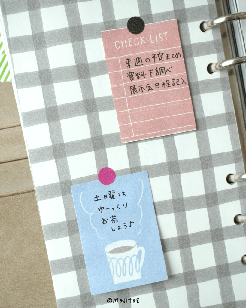 小さなメモ紙に書いて手帳にちょこっと貼っておくのもかわいいです。