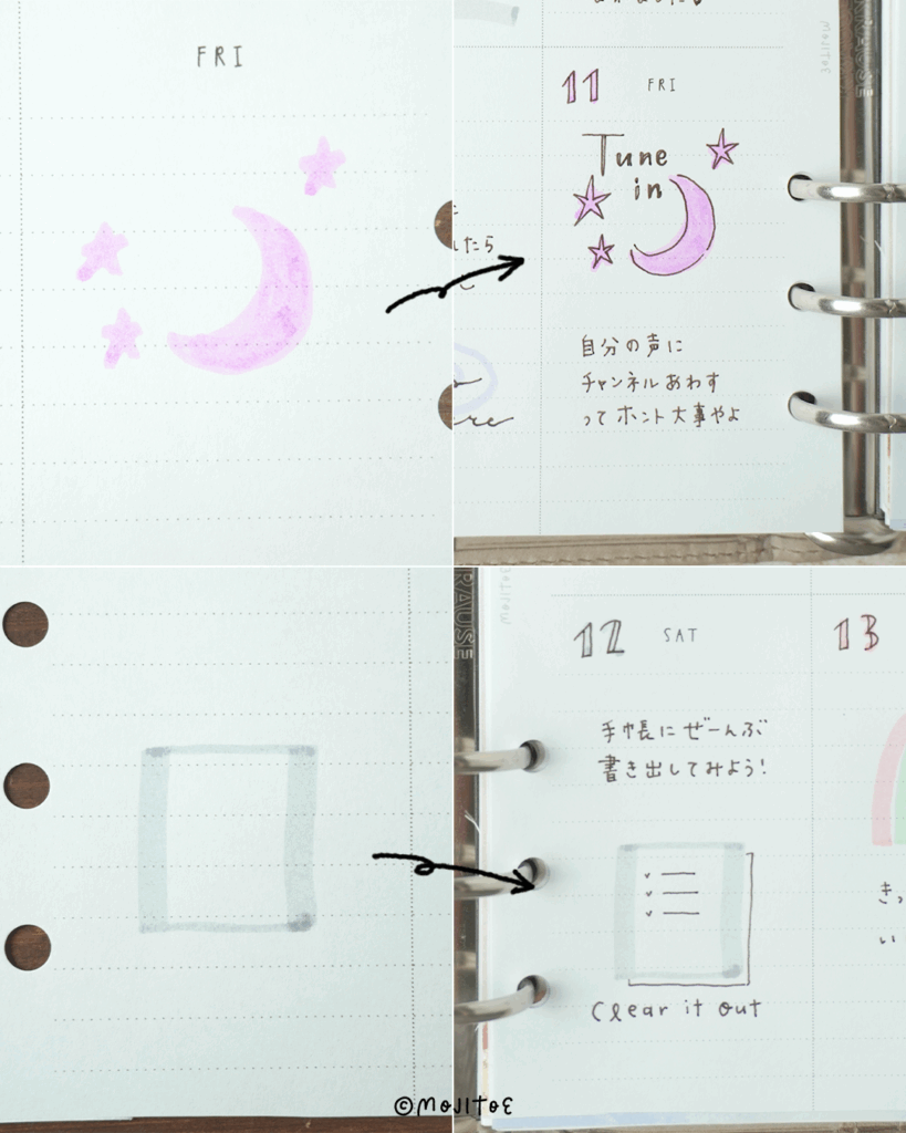 1週間を見渡せる週間ブロック手帳を、カラフルにイラストでアレンジ。