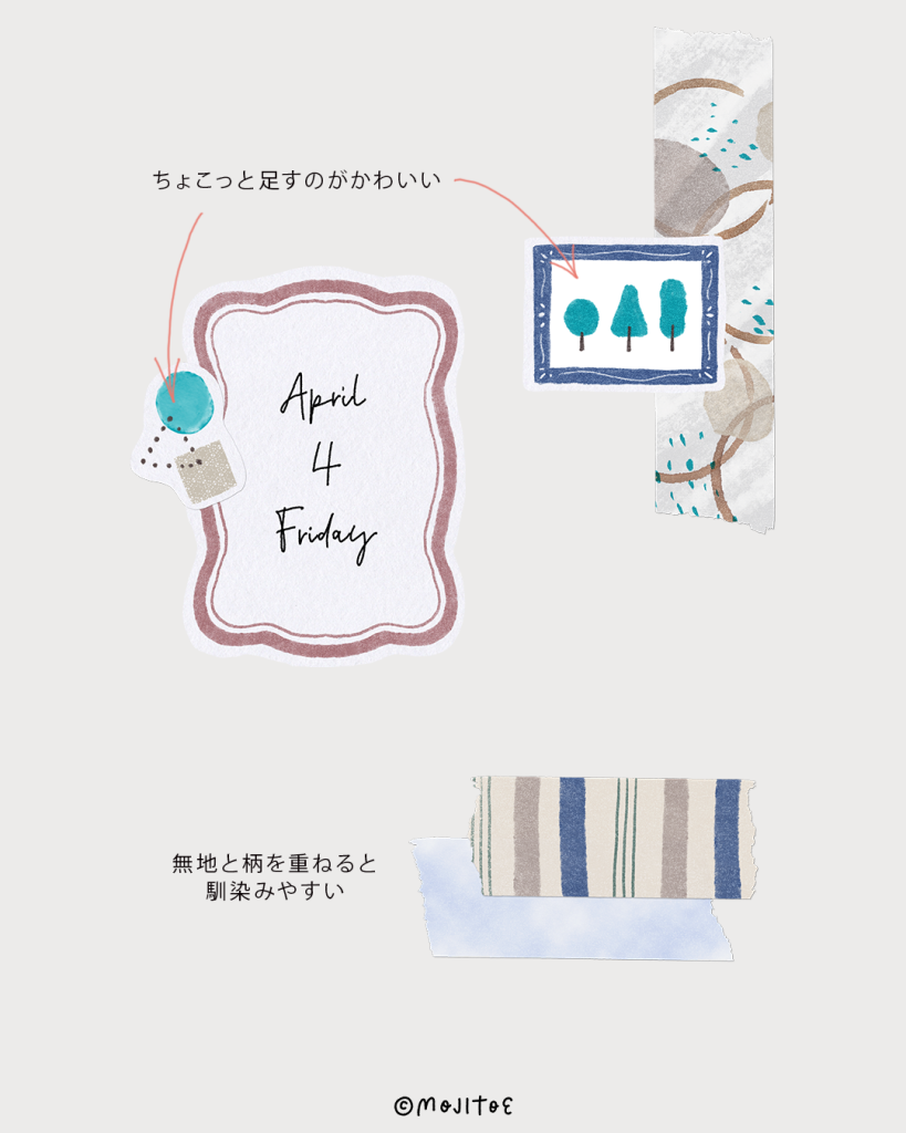 手帳デコをおしゃれにレイアウトするコツは、ほんの少しの重ね技。