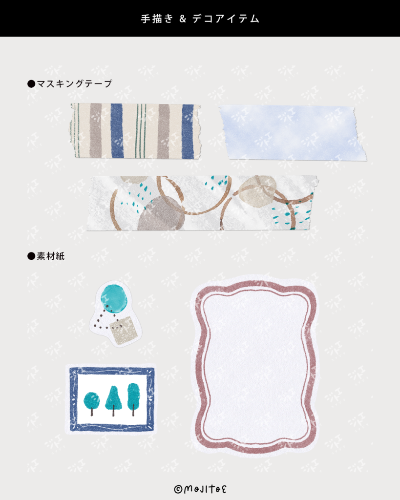 手持ちの似たアイテムを使うか、下のおすすめアイテムから素材紙をゲットしてね♪