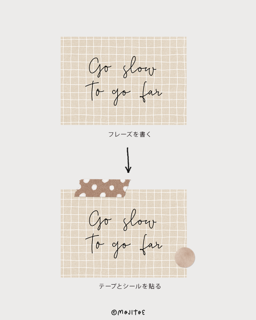 紙を貼る前に先にフレーズや日付アレンジを書いておくとミスが防ぎやすいです。