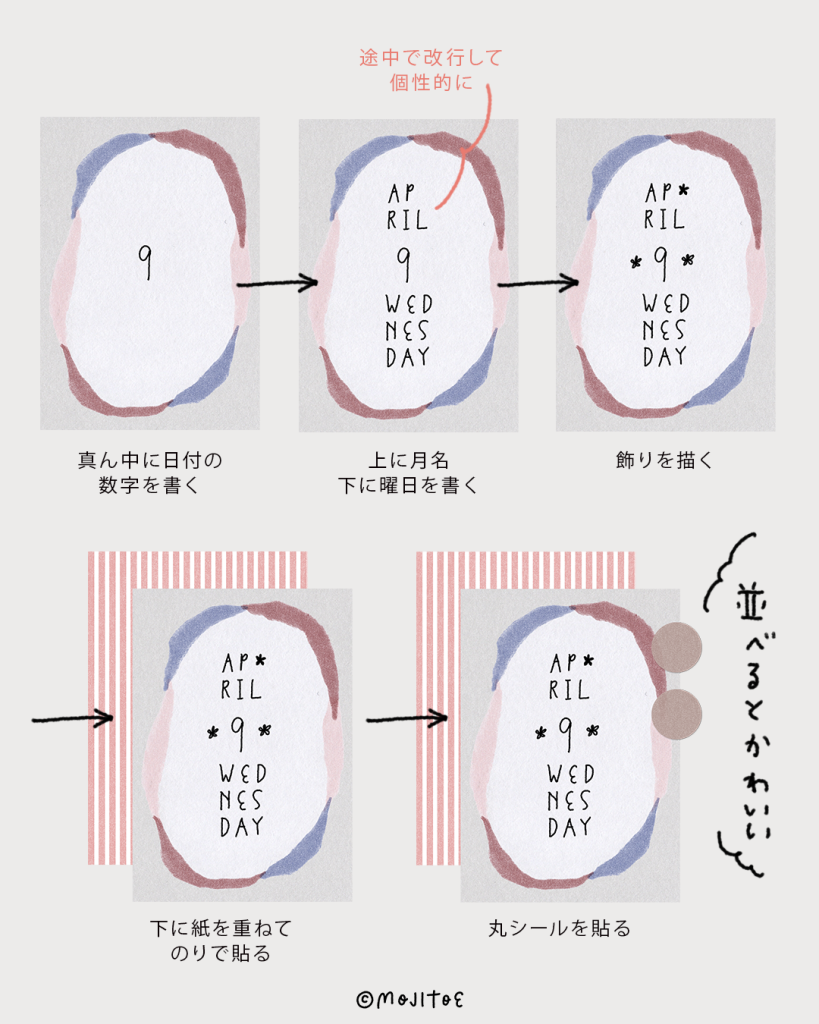 ミスを防ぐには、貼る前に先に日付アレンジを書いておくのも手。