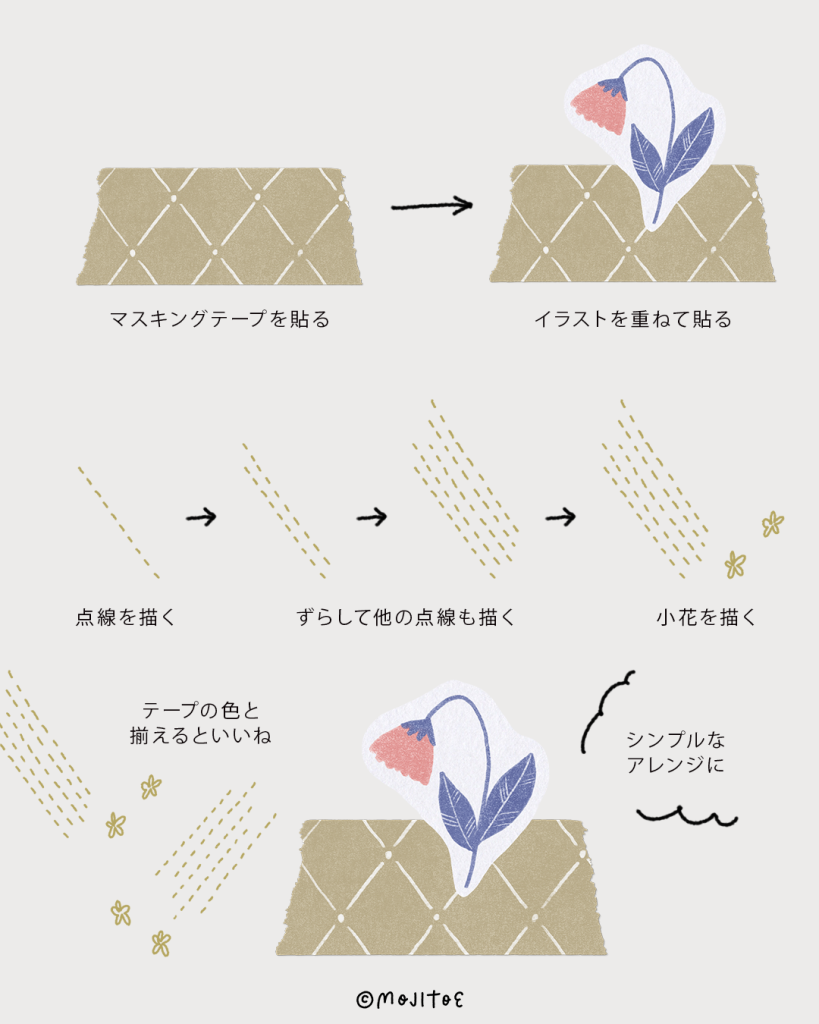 ゴールドのテープやペンを取り入れて、煌めきがプラスされると気分も一層アップ。