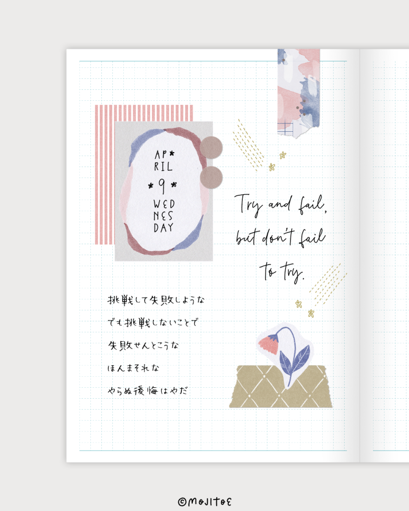 手帳見本を参考に素材を貼ってみてくださいね。