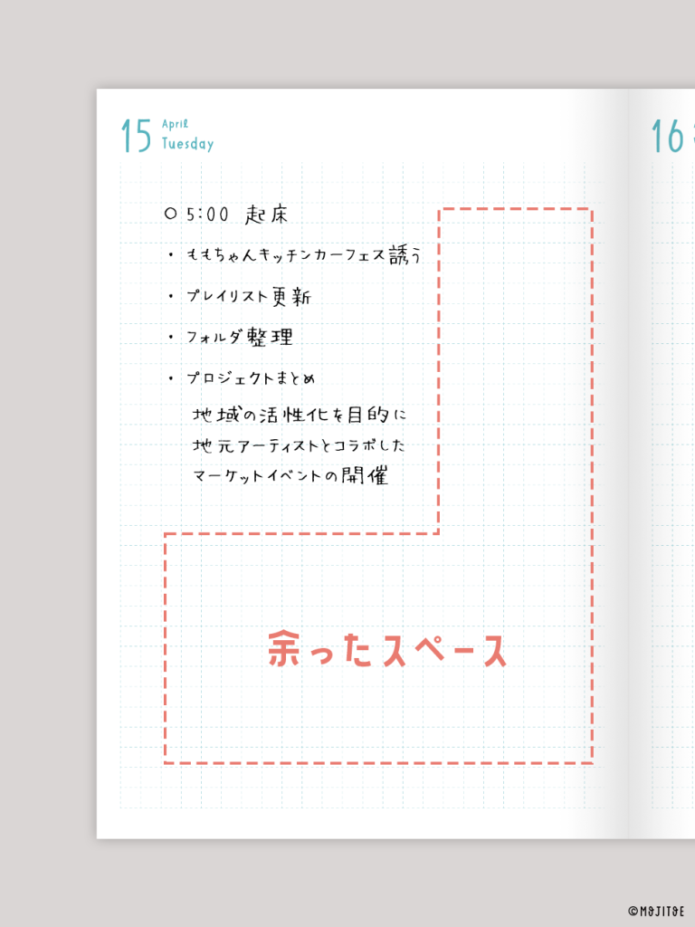 気になる人には気になっちゃう、デイリー手帳の右下にできるL字形の余りスペース。