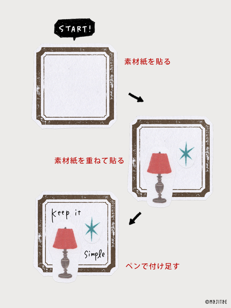 下部の大きな余白にメモの素材紙を重ね貼り。