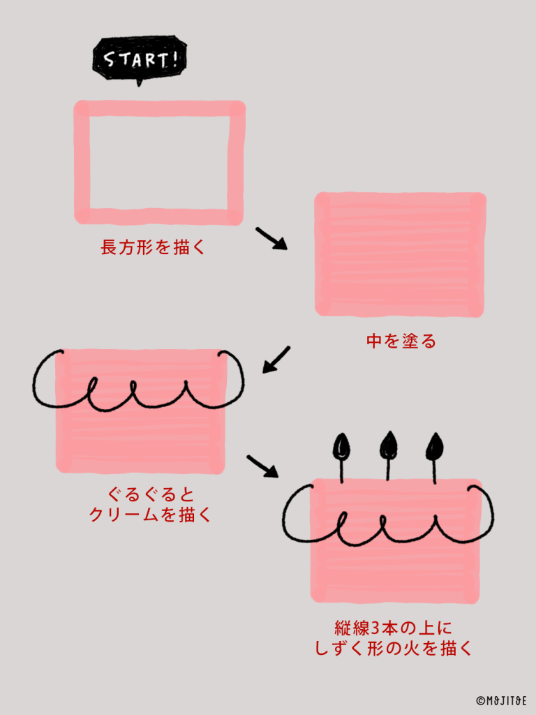 誕生日やお祝いの日に使えるケーキのイラスト。