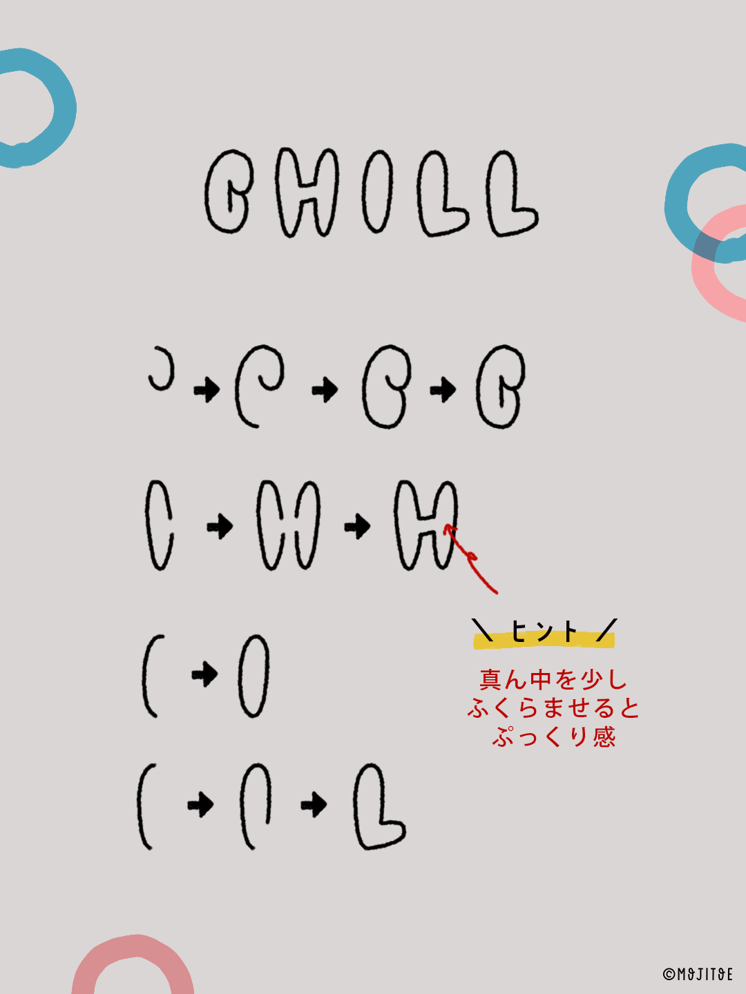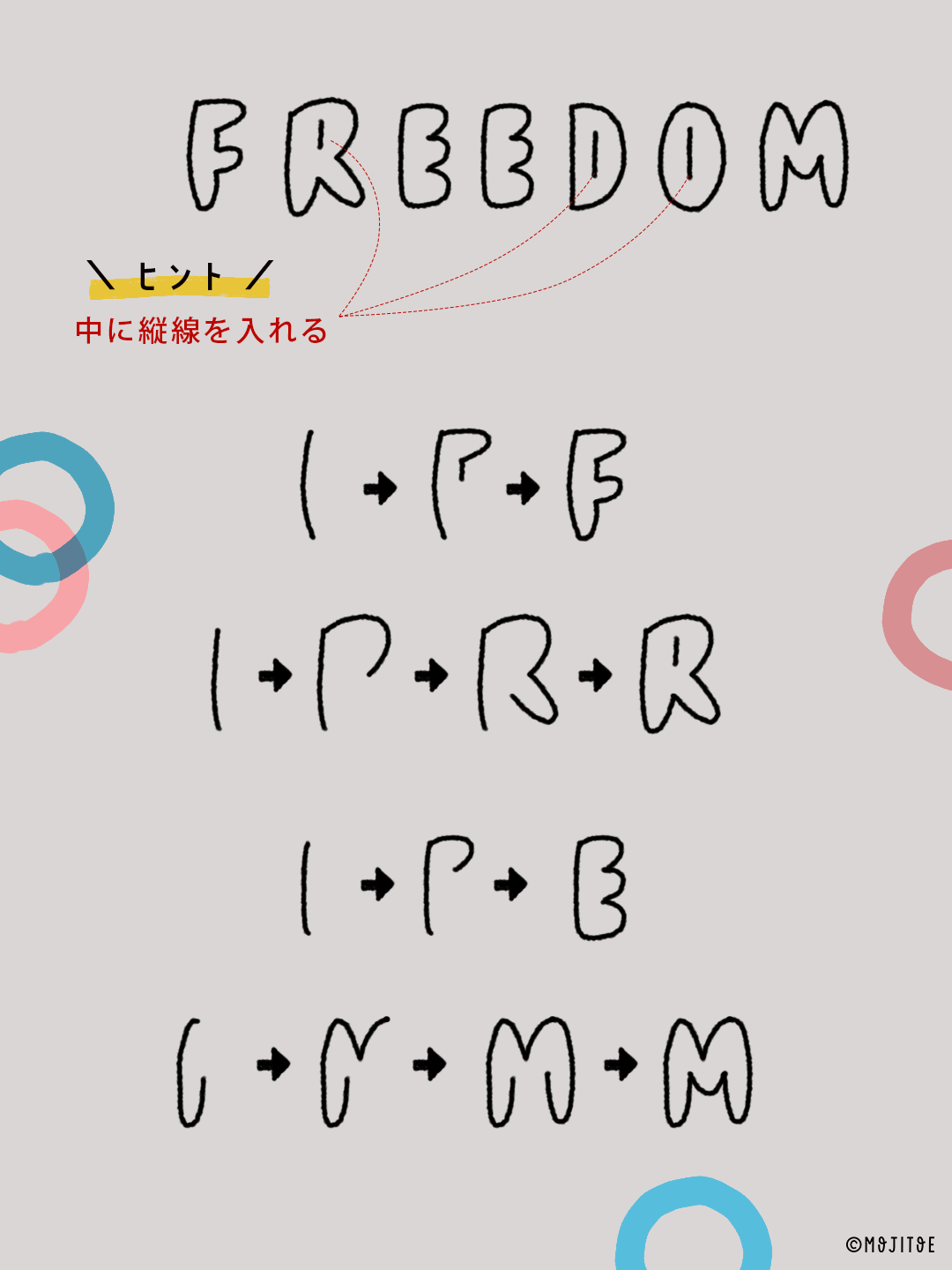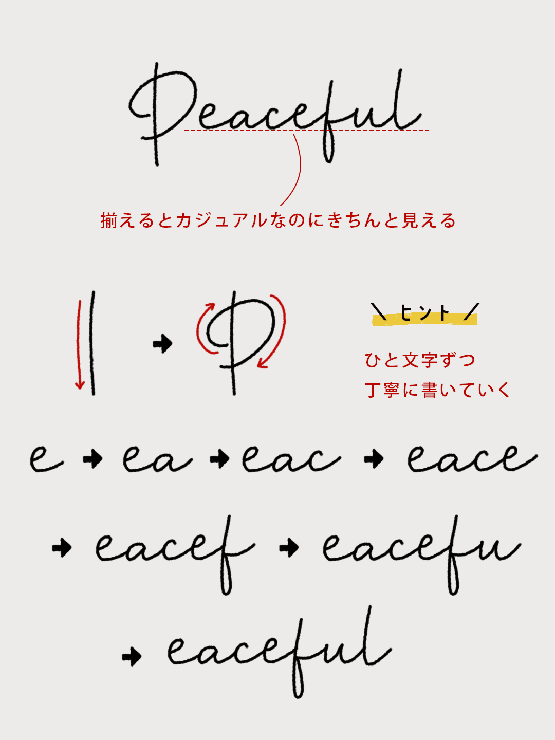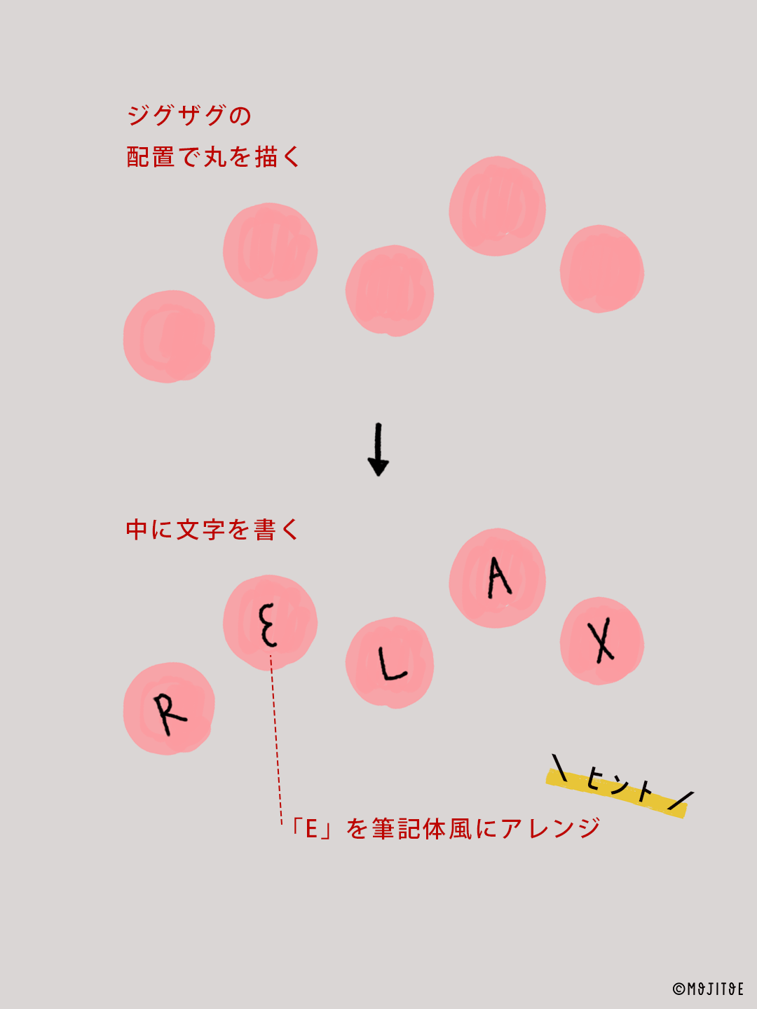 記事の後半には手描き文字の書き方ステップも掲載しています。