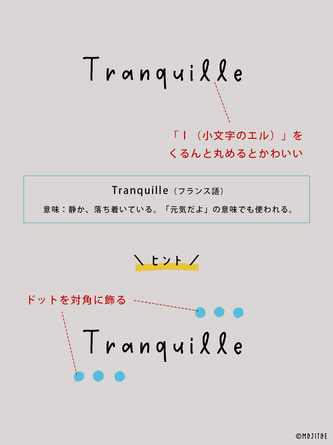 「Tranquille(トランキル)」はフランス語で、「静かな」「穏やかな」「落ち着いた」という意味です。