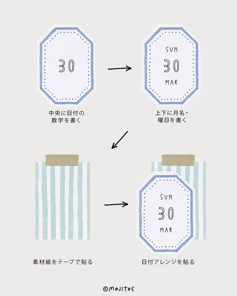 2025.03.30 2025.10.17 アイテムデコ-作り方 八角形フレーム柄の日付アレンジ[25033011] OSONO HOW TO MAKEこのアレンジの作り方 Journal Deco Ideas Using This Aarangementこのアレンジを使った手帳デコ あわせて読みたい【Day2】かわいい&おしゃれ♪ 1週間分のコラージュ手帳デコ#2<デイリー> #シンプル#ストライプ#フレーム柄#ミニメモ#日付をかわいく ABOUT ME OSONOコンテンツクリエイターXInstagramYouTubeContact京都在住のコンテンツクリエイター🎨 文字やイラストの描き方、手帳デコのアイデアなどを中心に 手帳やノートの使い方・書き方・楽しさを提案しています📖 『大好きなカラーペンでワクワク広がる!簡単デザイン文字』(翔泳社)『イメージとレイアウトで探しやすい 手描き文字&簡単イラスト アイデア帳』(KADOKAWA)ほか、以前の活動名「今田里美」名義での著書も多数✨