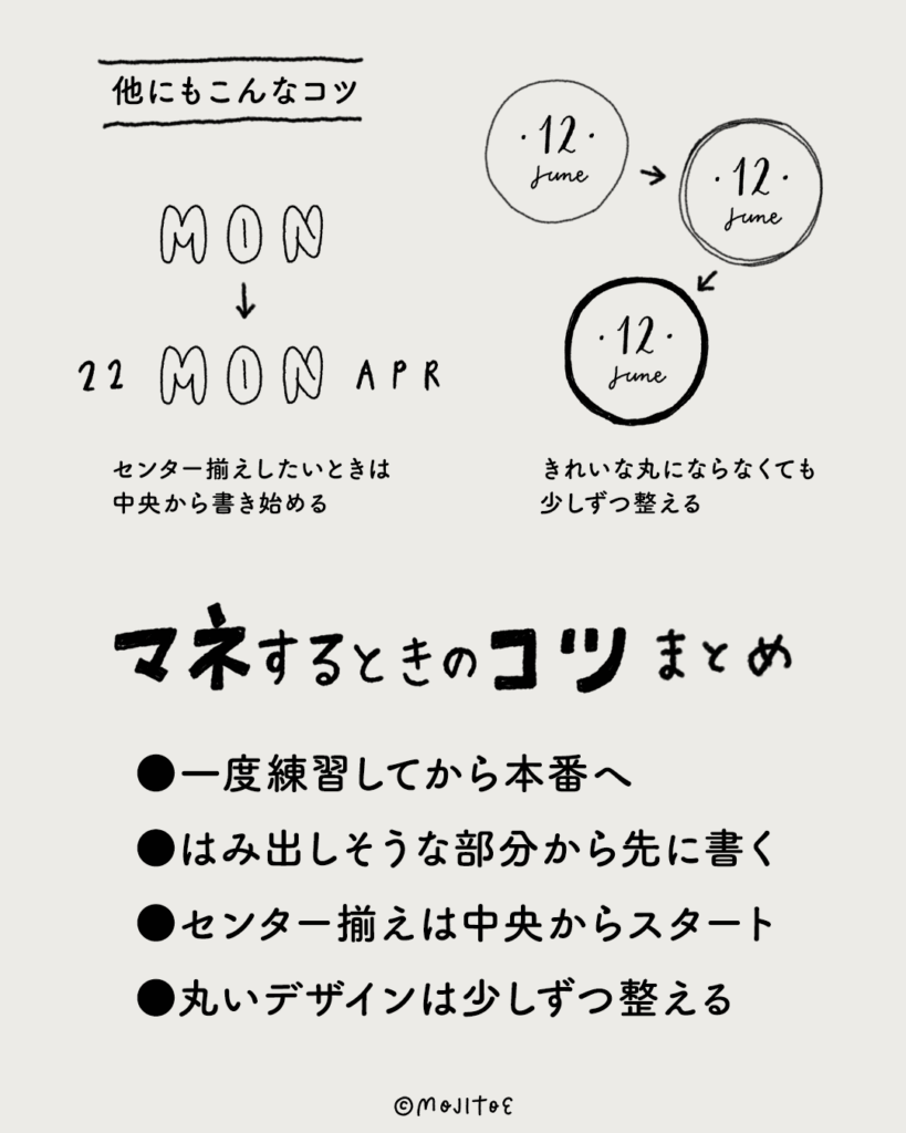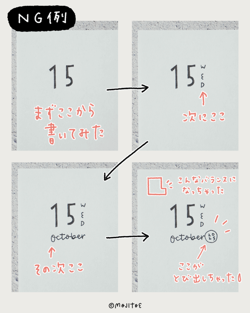 「かわいい日付アレンジを試してみたいけれど、いざ書くとバランスが悪くなってしまう…」