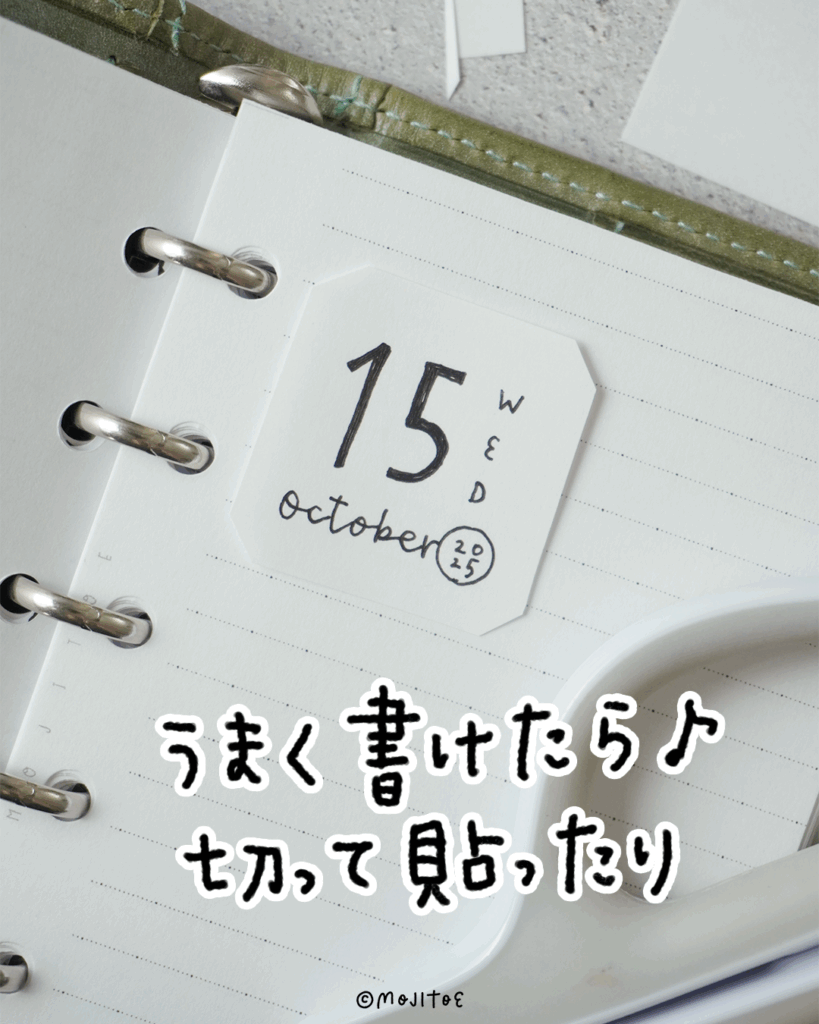 次は「2025年8月2日火曜日」のデザインを参考に、「2025年10月15日水曜日」を書いてみます。