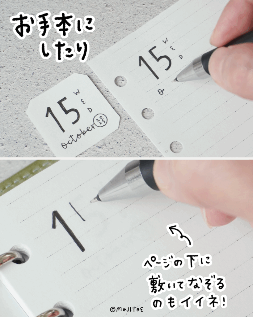MOJITOEの新商品 『【PDF】30種の日付アイデア 8Pミニブック』 では、30種類のかわいい日付デザインを収録しています。