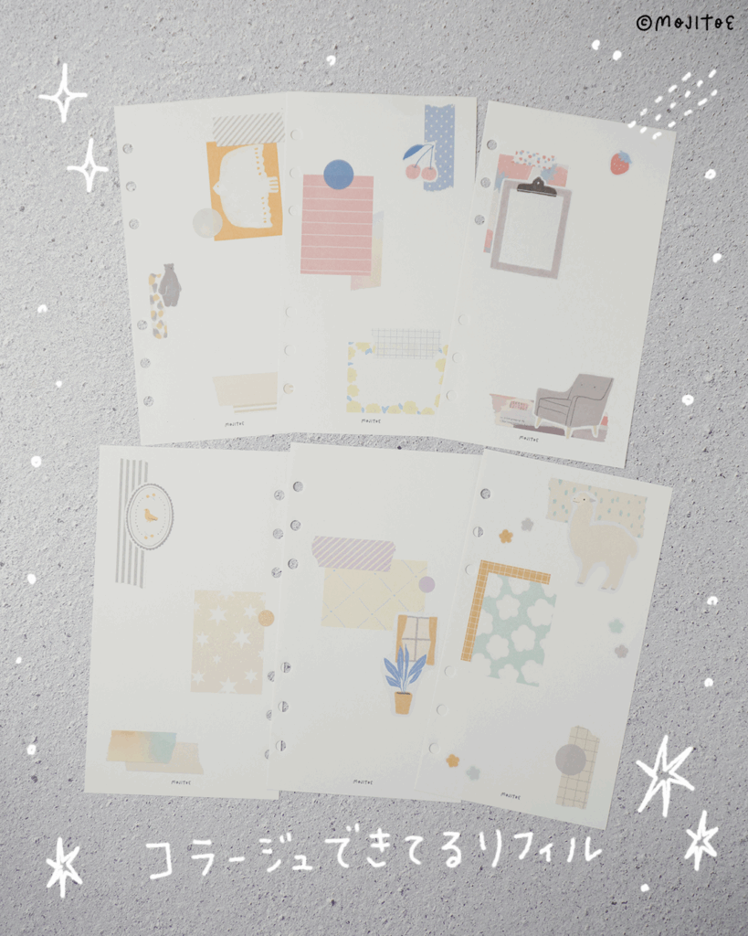 今回は「【システム手帳】コラージュできてる柄 #01 バイブルサイズ 全7柄 PDF」を使っています。