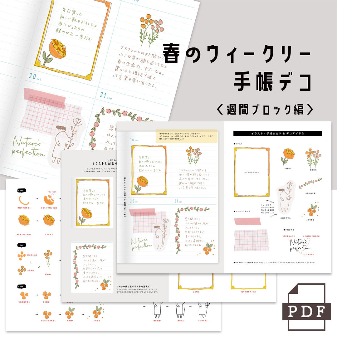 お花のモチーフをたっぷりつかった週間ブロック手帳の見本です。