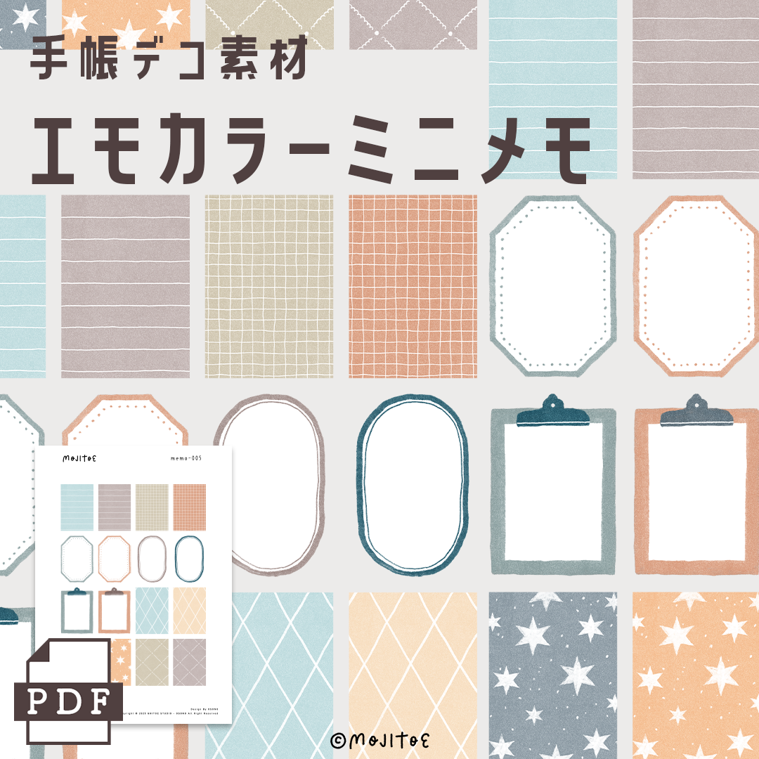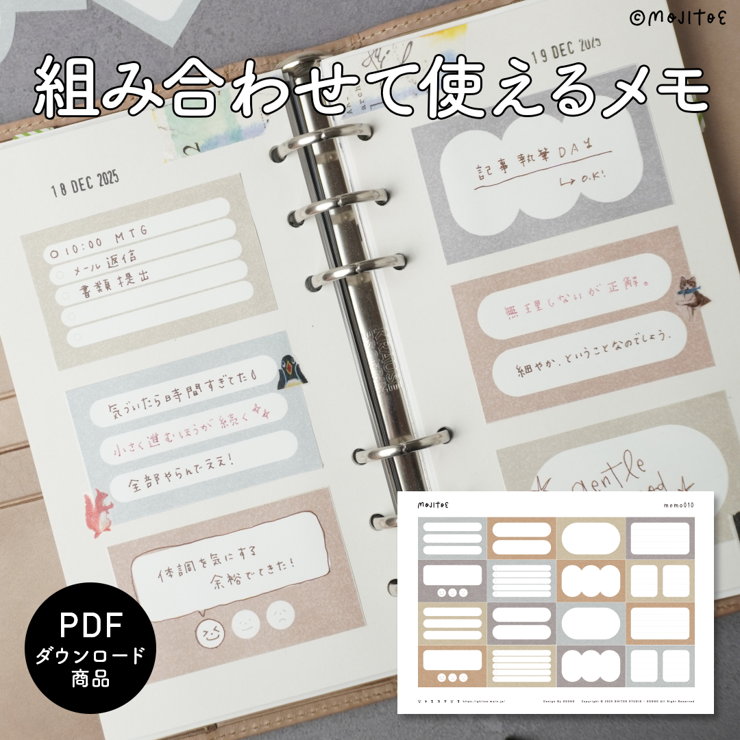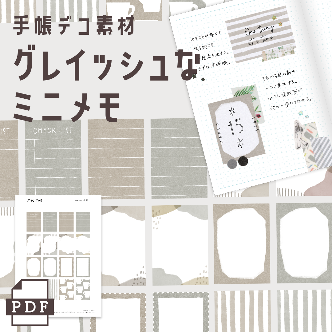 【手帳素材PDF】組み合わせて使えるメモ くすみカラー
