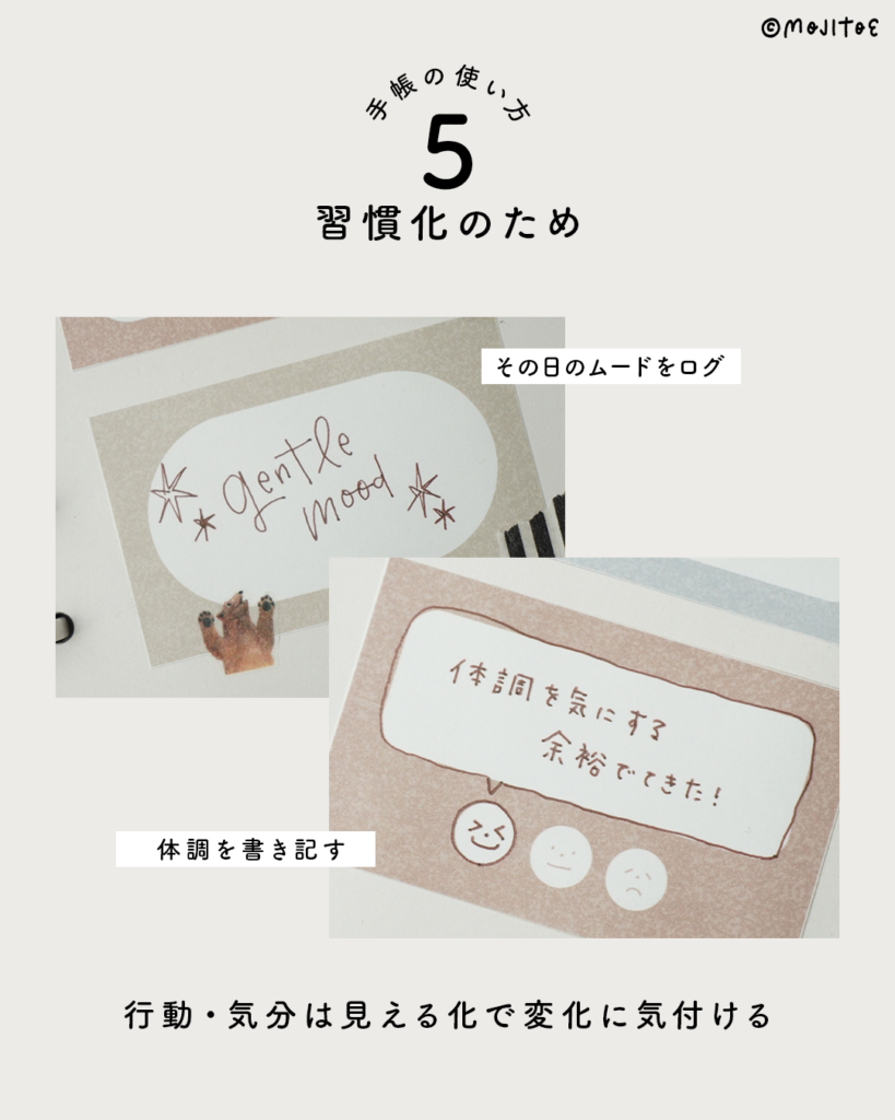 行動や気分が見える形になると、続いていることや、変化していることに気づきやすくなります。