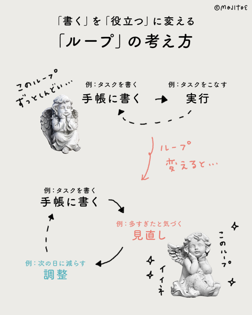 たとえば、 タスクを書く → 多すぎたと気づく → 次の日に減らす。 これも立派な「ループ」です。