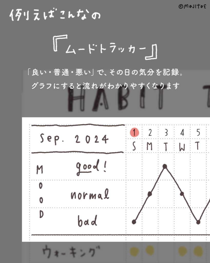 その日の気分を良い・普通・悪いなど、シンプルに記録。
