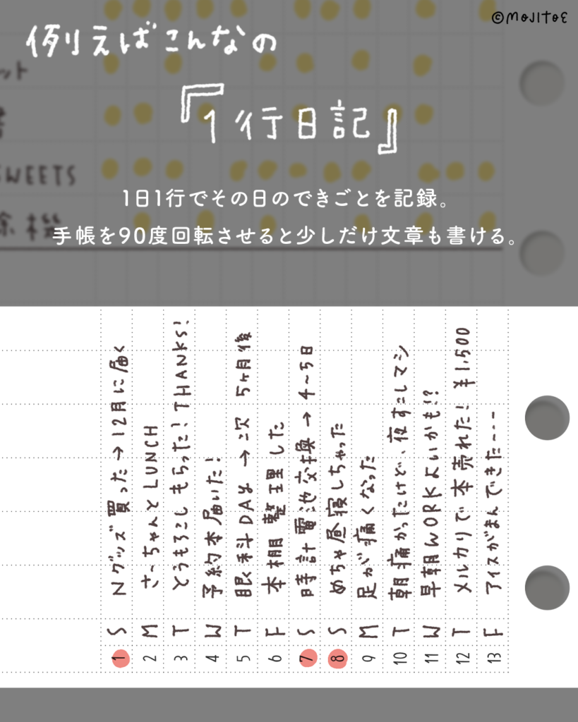文字を書くスペースは、手帳を90度傾けて作ることができます。