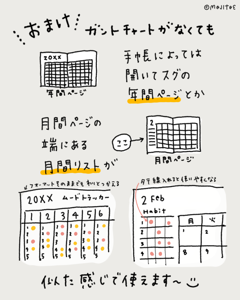 もし手帳に「ガントチャート」という名前のページがなくても、手持ちの手帳を一度チェックしてみてください。