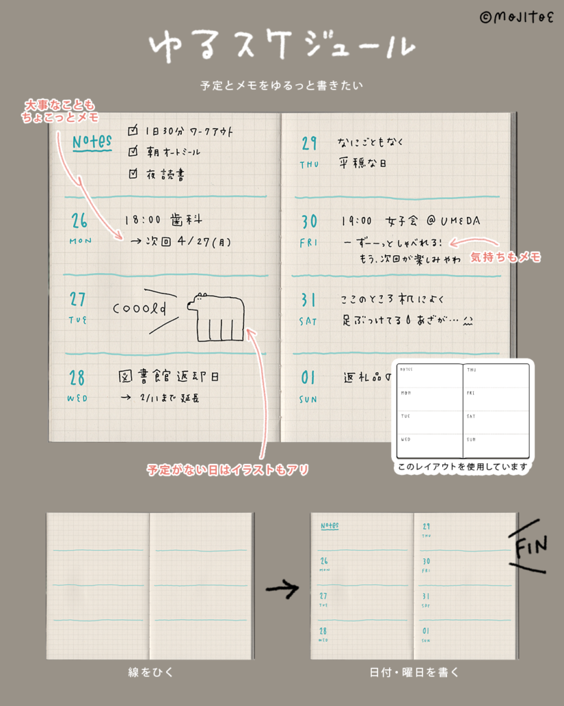 その週の雰囲気を残すページくらいの気持ちでOKです。