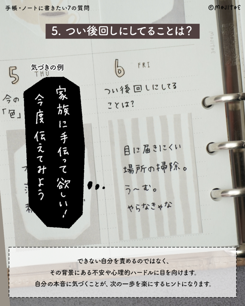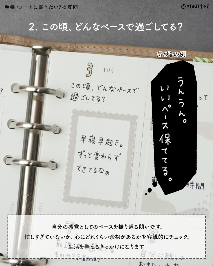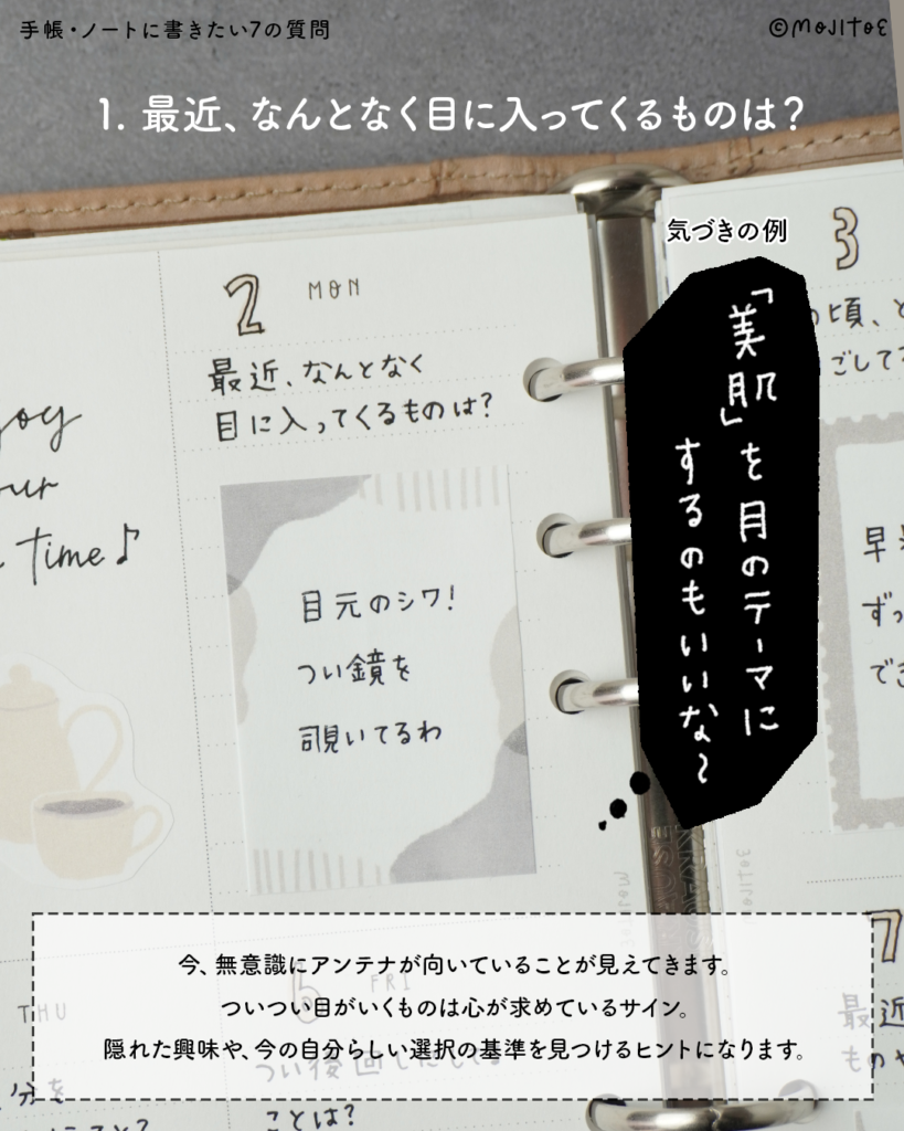 「今日はこの1個だけ答えてみようかな」と、軽い気持ちでノートを開くきっかけにしてみてください。
