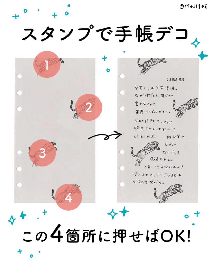スタンプ手帳デコ|4箇所に押すだけでバランスよく整う方法