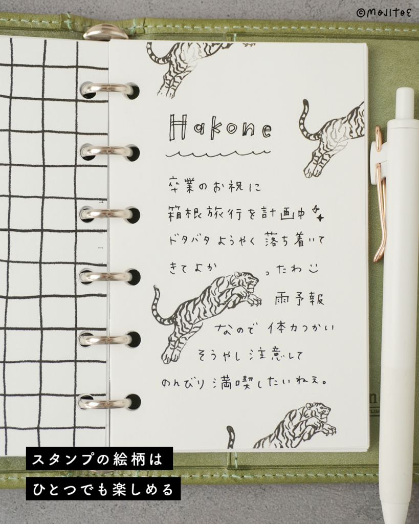 スタンプを押したら、あとは余白に日記やメモを書くだけで完成です。