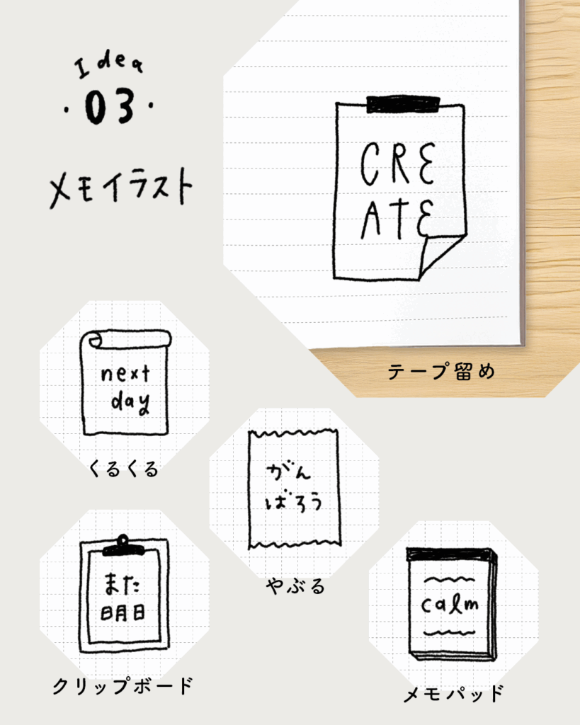 小さなメモイラストは、手帳の中でちょっとしたアクセントになってくれます。